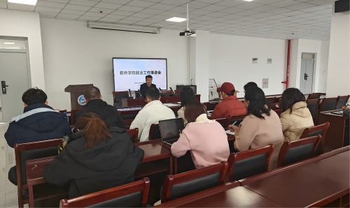 2024年11月15日,软件学院在学院楼328会议室召开2025届毕业生就业推进会。此次会议旨在深入贯彻学校就业政策,分析当前就业形势,明确下一阶段就业工作目标,推动学院毕业生就业工作的高质量发展。软件学院党委副书记兼副院长高宏图、就业辅导员乞国钰、贾乐及全体实训企业就业负责人参与了会议。