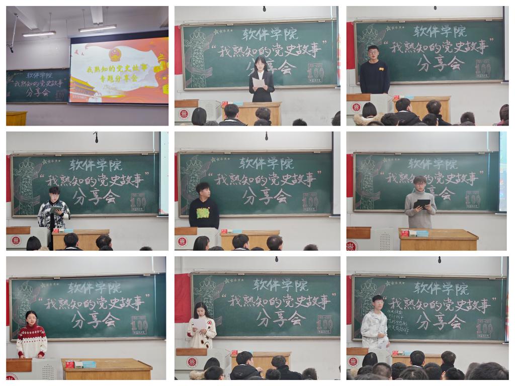 为回望过往的奋斗路,眺望前方的奋进路,传承革命精神,讲好党史故事,引导学生在党史故事中汲取奋进的智慧和力量,凝聚强大精神力量,达到学史明理、学史增信、学史崇德、学史力行。11月份,软件学院党委举办了两场“我熟知的党史故事”主题分享会,累计参与支部成员超过260名,在成员中反响强烈。
