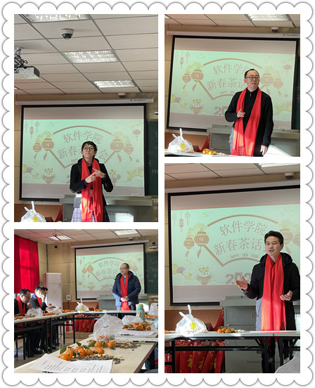 新春将至,年味渐浓。为增强学院上下的凝聚力与向心力,丰富学院教职工的精神生活,营造喜庆的节日气氛,伴随冬日的阳光,2022年1月15日下午3时,软件学院工会举办了2022年新春茶话会。院党委书记孙豫峰,院长宋文爱,院党委副书记高宏图,院教学副院长李众悉数出席,学院教师们踊跃参加。
