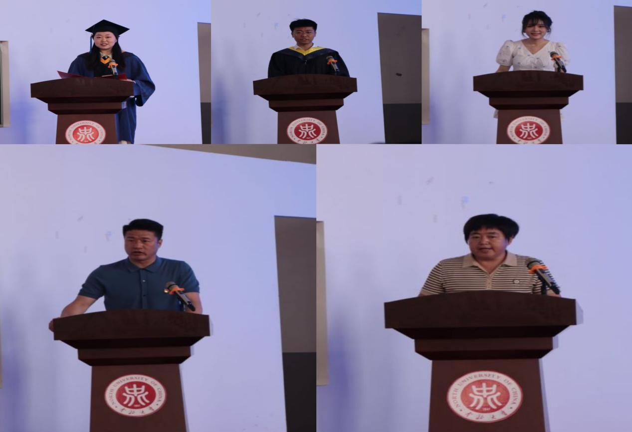 硕士毕业生代表梁宁、本科毕业生代表王斐分别发言,回顾了在校学习生活的美好时光,向母校和恩师表达了由衷感谢和诚挚祝福,表示作为一名“中北软件人”,将牢记“明德善思、笃行于新”的院训,牢记初心使命,以青春的担当实现宏伟的人生目标。陈艺雯同学代表学院全体在校生向即将离开母校的学长学姐们表达最真挚的祝福,祝贺学长学姐们顺利毕业并表示会以学长学姐们为榜样,以自己优异的成绩,用青春和智慧为学院续写辉煌的篇章。