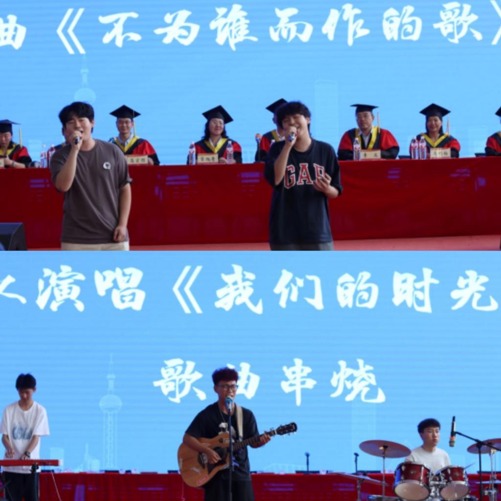 毕业典礼中,姚齐麟和于保瑞同学演唱的歌曲《不为谁而作的歌》以及中北大学拾玖乐队的演奏《我们的时光》和歌曲串烧先后为毕业生们献上真诚的祝愿,将现场氛围持续推向高潮。