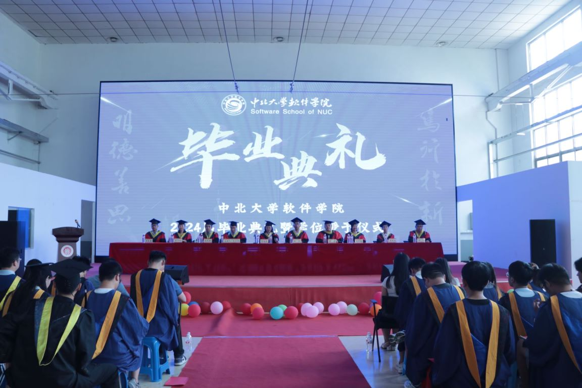 此年盛夏见证蓬勃成长,满载着青春的梦想与希望。2024年6月19日,中北大学东区训练馆内,“扬帆起航,未来可期”为主题的视频展示着软件学子的青春风采,传递着一声声师生的不舍和祝福。“我们毕业啦”文化签名墙前,身着学位服的毕业生们纷纷驻足,挥笔隽写着对母校的眷恋和希冀。