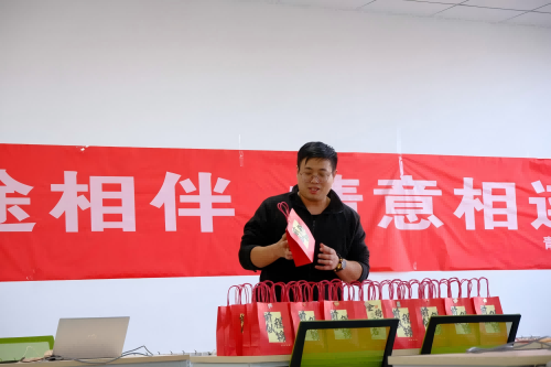 各实训企业满怀热忱地为每位考研学子们精心准备了暖心礼包——印有祝福语的卡片、写有“前程似锦”的书签、寓意心想事“橙”的橙子、印有每位同学名字的可乐等。活动中,实训企业老师、学院领导及班主任对即将参加考试的同学们表示了问候和美好的祝愿。一句句暖心的话语,一声声温暖的祝福,鼓励着学子们坚定信心,全力以赴,帮助他们在紧张备考阶段缓解心理压力。随后,在学院领导和实训企业代表的带领下,老师们将精心准备的考研加油包一一送到学子们的手中。学子们纷纷表示,这份来自学校、企业和班主任的关怀让他们倍感温暖和鼓舞,他们将以更加坚定的信念和更加饱满的热情投入到备考中,争取在考试中取得优异的成绩。