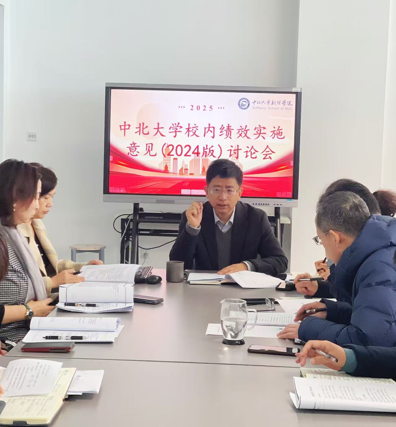 为进一步统一思想、凝聚发展共识,高效率推进绩效工作落地落实;2025年3月5日上午,软件学院绩效工作小组召开专题推进会,院领导、各科室科长、基层教学组织主任及副主任参加会议,围绕《中北大学校内绩效实施意见(2024版)》文件展开研讨交流,