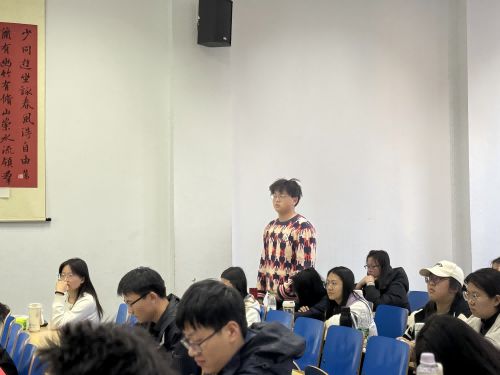 在互动交流环节,现场气氛热烈。同学们围绕技术应用场景拓展、学习路径优化、岗位能力要求等话题踊跃提问,青阳结合自身丰富的行业经验,逐一给予专业而细致的解答,为同学们提供了宝贵的指导意见。