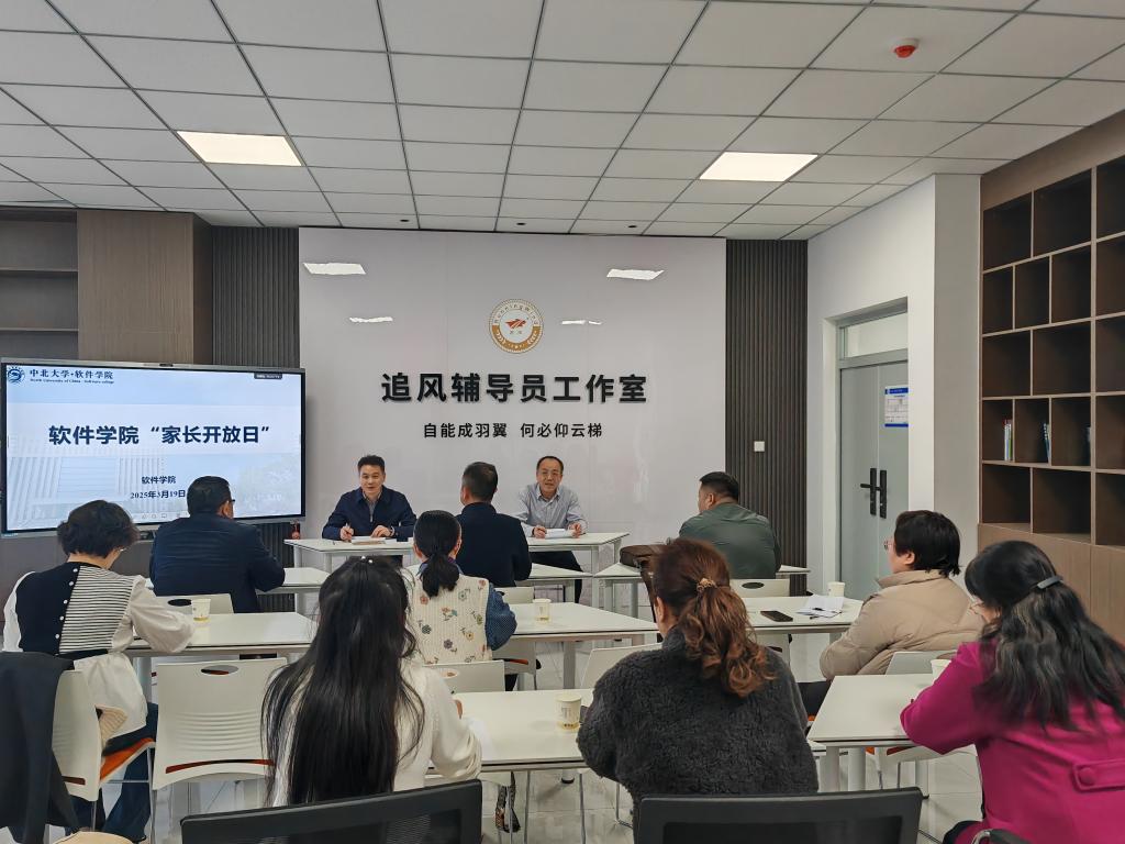 3月19日下午,学院在软件实验大楼“追风逐梦”辅导员工作室举办2025年3月“学生家长开放日”活动。本次活动接待了来自学院不同年级的10名学生家长,学院党委副书记高宏图、副院长李众出席。