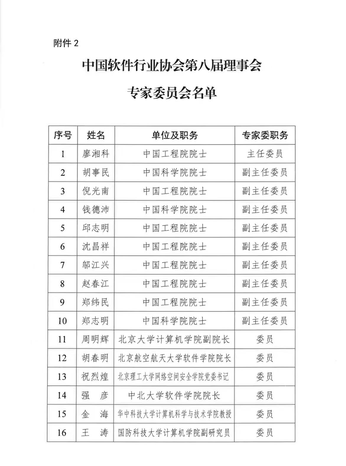 专家委员会的职责是严格遵循中国软件行业协会工作要求,充分发挥专家智库作用,聚焦我国软件产业发展中的重大课题,为协会提供专业咨询服务并提出建设性意见。根据协会委托,深度参与国家软件产业发展战略、政策及规划的研讨与制定,提出科学合理的决策参考。同时,持续跟踪国内外软件产业动态,开展前瞻性研究,洞察行业发展趋势。此外,积极搭建中外专家及咨询机构交流合作平台,推动软件产业国际合作研究,助力我国软件产业在全球竞争格局中提升创新能力与发展水平。附专家委员会名单: