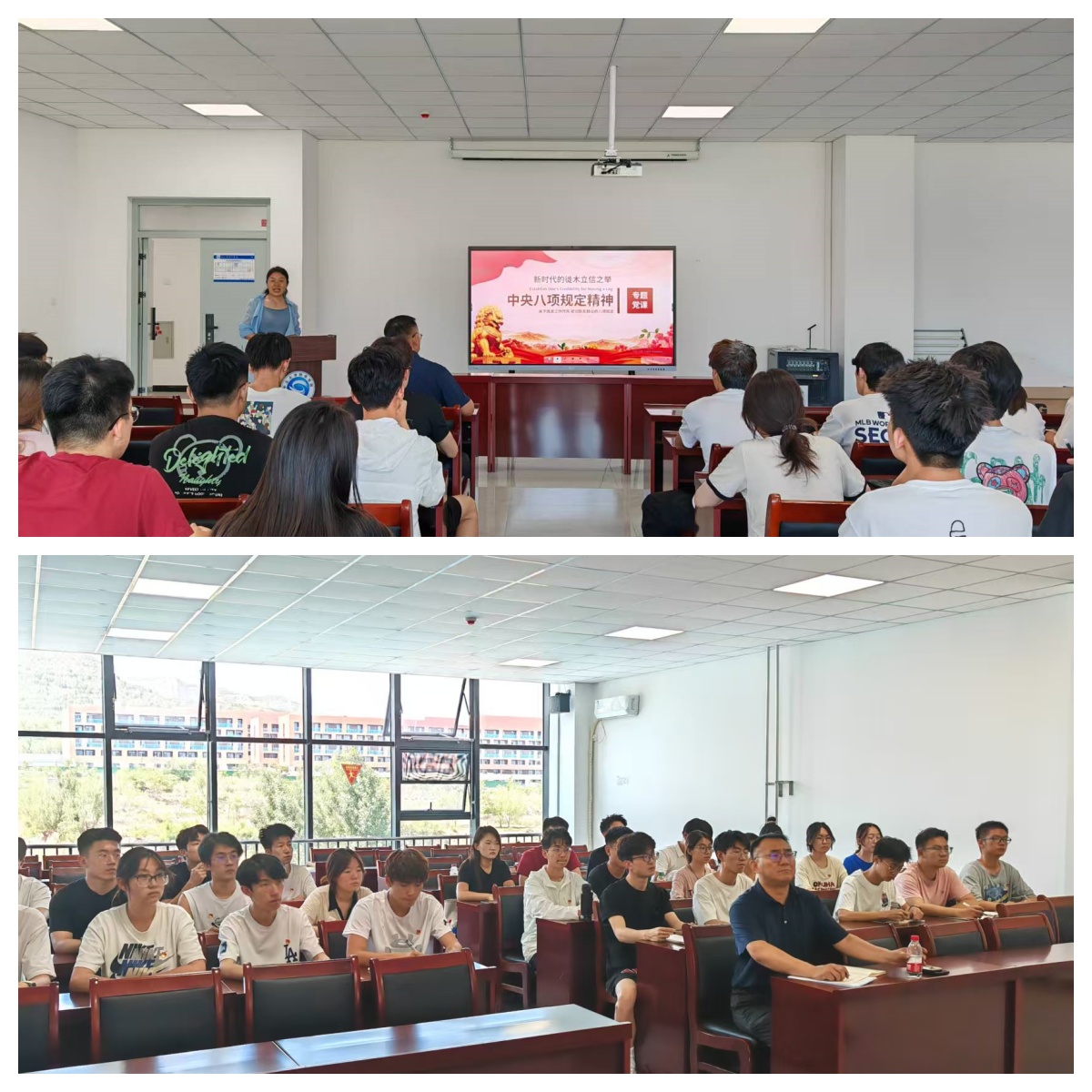 常旭青书记以“新时代的徙木立信之举——中央八项规定精神”为题,为学院党员进行了深入讲解。她通过政策图解、数字对比、关键词解析等方式,生动阐释了中央八项规定精神的核心要义;并且结合深入贯彻中央八项规定精神学习教育实际,就成效经验、收获感悟、实际举措以及长效机制的建立与大家进行了分享。