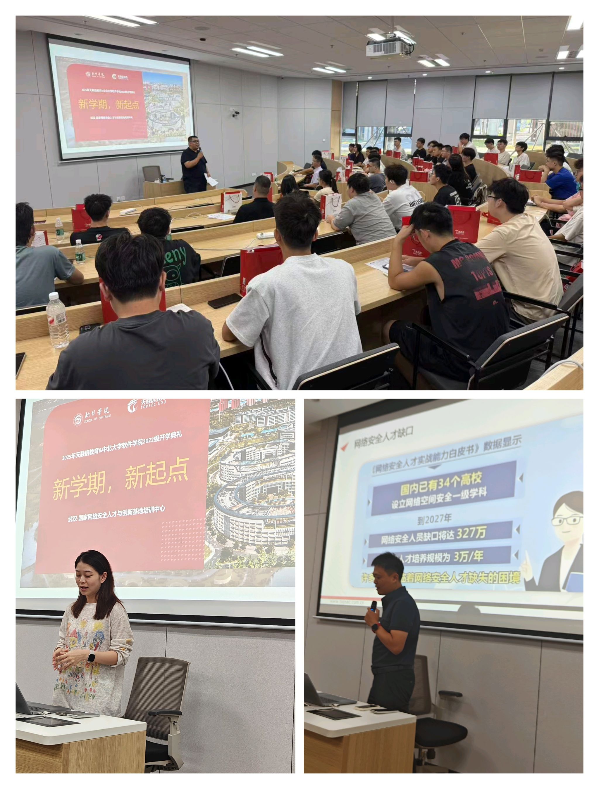 8月25日上午,软件学院&天融信联合开展的实训实习项目在国家网络安全人才与创新基地正式开班,62名怀揣专业理想的软件学子由此开启从课堂走向产业一线的实践征程。学院党委副书记高宏图在致辞中,言语恳切,着重向同学们叮嘱三点:第一,不忘初心,方得始终。告诫同学们不要忘记选择校外实训的初衷,以积极就业为核心导向;第二,对自己负责,做有效沟通。提醒同学们自己是自己的安全第一责任人,保护好自己,保护好同学,遇到任何问题与老师同学积极沟通协调,以解决问题为导向;第三,他山之石,可以攻玉。勉励同学们谦虚谨慎,与同在基地实训的兄弟院校学生交朋友,取长补短,拓展资源。他强调实训实习是提升学生实践能力、衔接社会需求的重要一环,鼓励同学们积极投入、学以致用,通过实训实习提升专业技能,增强自身就业竞争力,成为网络安全领域的优秀人才。天融信相关负责人也表示,将全力保障学子实训期间的学习与生活,为其成长成才倾注基地优质资源,促进同学们高质量就业,并为全体学生讲授了实训第一课。