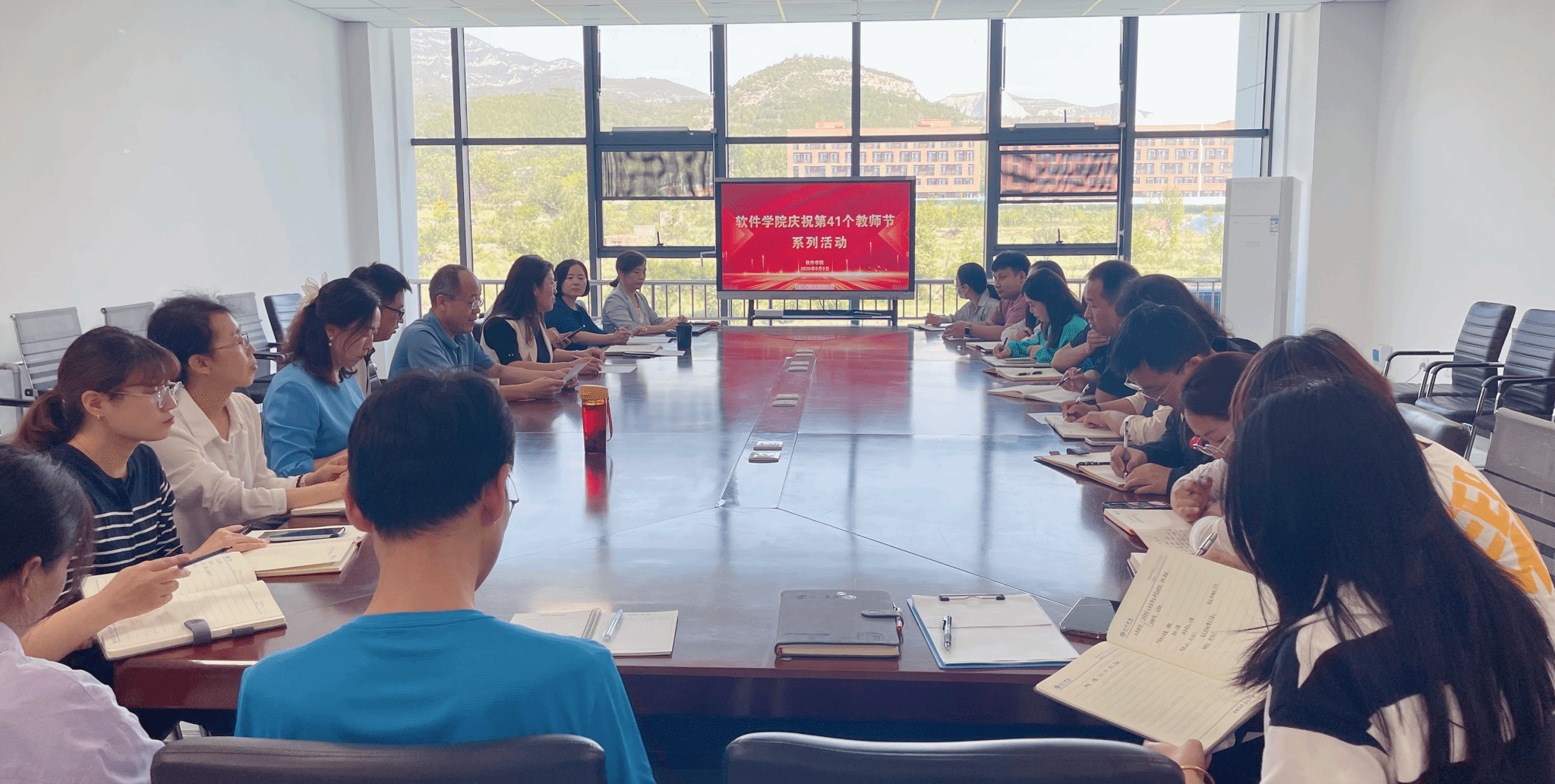 9月9日上午,软件学院在336会议室举行庆祝第41个教师节系列活动。学院党委书记常旭青主持会议,院领导、各系主任、近三年新入职的教师参加。