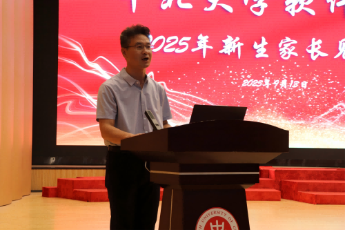 付东来着重介绍软件工程专业研究生教育与培养,讲解了本科生攻读硕士研究生的必要条件和学业规划,并献上“前置祝愿”——“希望四年后在研究生智慧教室再见到新入大学的同学们!”他以游戏中打怪兽的比喻,形象说明了学业晋升的感受以及过程。“家长今天的信任,就是孩子明天的底气”,他强调通过家校共育机制,用“陪伴+数据”培养学生把这张时间表变成现实。