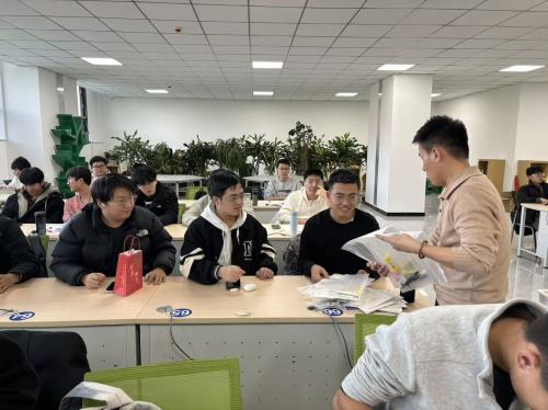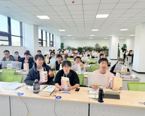 随后,实训企业代表与学院领导共同为同学们发放“考研暖心礼包”。这份礼包兼顾实用性与纪念意义,精准匹配备考需求:速干中性笔、笔记本可满足日常书写与笔记整理需求;寓意“一战成硕”的新鲜橙子,寄托着校企双方对学子金榜题名的美好期许;印有“心想事成”字样的纪念袋,既是收纳复习资料的实用单品,也承载着深切祝福。礼包虽轻,情意深重,不仅切实解决了同学们备考中的实际需求,更传递出校企携手助力学子逐梦的深切关怀与殷切期盼。