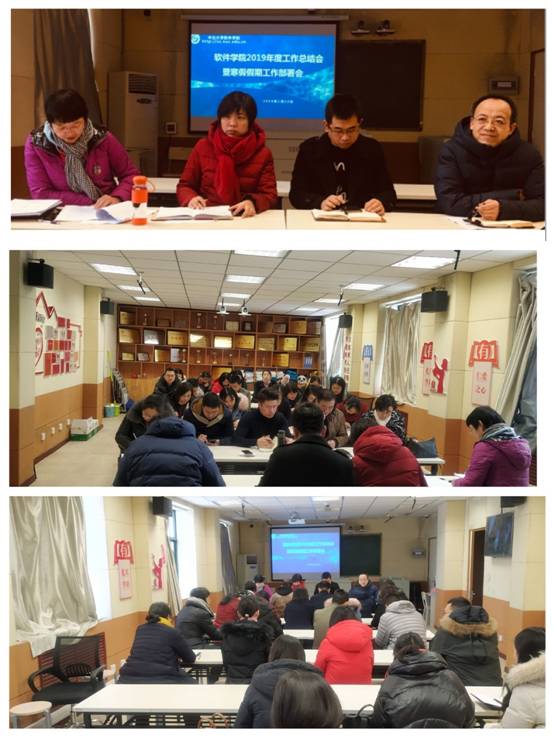 1月10日上午,软件学院在学院楼122室召开全院教职工大会,及时传达学校各项工作会议精神,结合学院实际情况,认真总结本年度工作,同时安排部署寒假安全、科研等各项工作。全体院领导、教职员工参加了大会,会议由学院院长宋文爱主持。