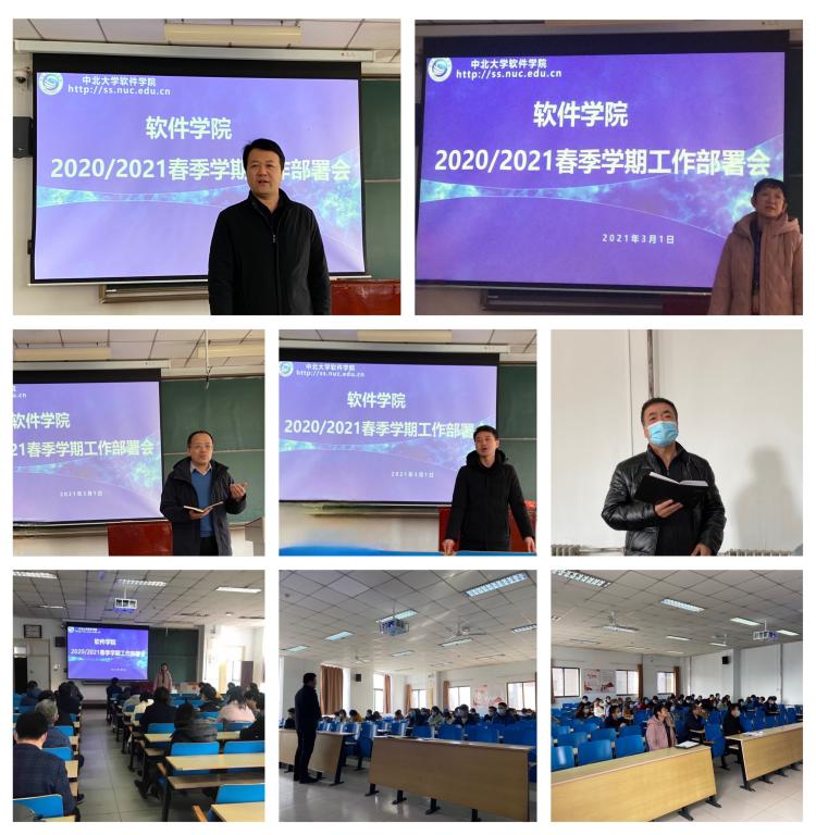 最后,宋文爱院长结合2021年学院工作计划,做了题为“凝心聚力促发展 众志成城谱新篇”的专项工作安排,以申报特色化示范性软件学院为目标,以学涯服务平台为抓手,开展教学、科研、学生、管理为一体的数字化建设;做好人才引进、岗位设置、评聘分离、绩效改革等人事工作,将“三全育人”的理念和育人管理体系贯穿整个学生培养环节,重视课程思政、“三个一流”建设、积极申报项目,加强团队建设、创新就业引领、筹备校庆活动等各个工作方面做了细致深入部署和安排;希望全院教职员工新的一年继续发扬主人翁的精神,以饱满的热情、脚踏实地的工作作风开展好各项工作。