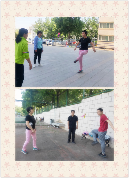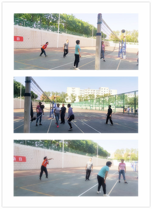 教职工自发组成了排球队进行排球赛。排球场上,矫健的身姿展现出排球轻松随意、热闹有趣的特有魅力,老师们各施绝技,发球,拦球,扣球,每一个精彩的瞬间都吸引着观众的眼球,引来了阵阵欢呼。你来我往中,友谊也越发深厚。毽子在老师们的脚下仿佛有了生命,跳跃切换,开出了一朵朵的花儿。