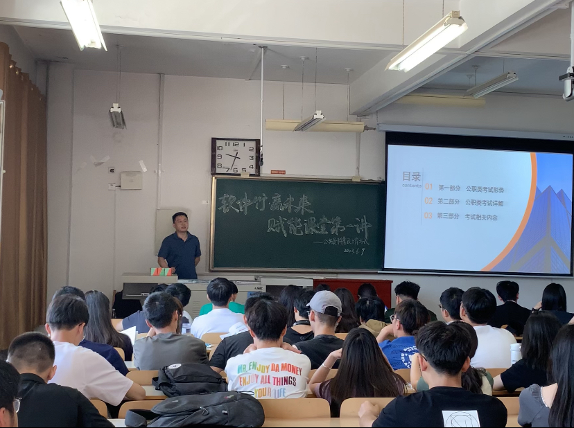 6月9日上午,在14号教学楼201H教室,“软件行·赢未来”赋能课堂第一讲开讲,主讲题目:公务员科普及上岸方式。学院特地邀请高顿教育公考研究专家张彬讲师授课,为大二、大三有考公考编意向的学生讲解辅导,帮助同学们建立正确的认知,做好充分的准备,掌握必要的技能和技巧。学院党委副书记兼副院长高宏图和就业辅导员乞国钰参加了课堂学习。