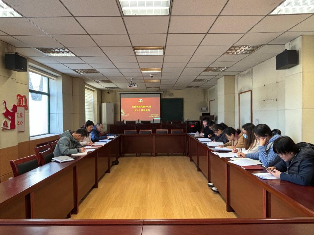 2023年12月8日上午,软件学院党委在学院122会议室召开党委理论学习中心组(扩大)学习会第九次集中学习。院党委中心组全体成员、各科室科长、各党支部书记参加会议,会议由院党委书记常旭青同志主持。