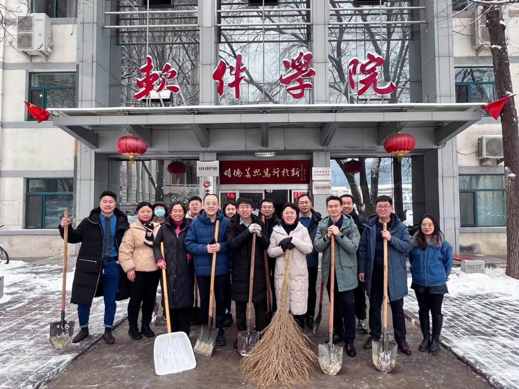 软件学院师生迅速响应,大家分工明确,配合默契,有的负责铲除积雪,有的负责清理雪块,有的负责清扫道路。大家不畏严寒,分工合作,展现了极高的热情和责任感,经过一个小时的奋战,软件学院门口主干道上的积雪被清理得干干净净,原本湿滑积冰难行的道路变得干净畅通,为师生的安全通行提供了便利条件,营造了干净整洁的出行环境。