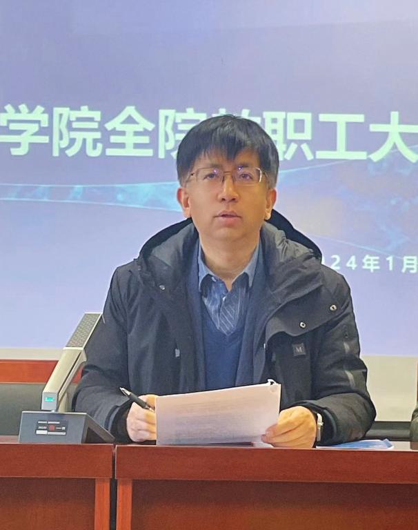 常书记回顾了2023年学院各项工作在全体教职工的努力下所取得的各项成绩,向大家表示诚挚的感谢;同时明确指出了工作中存在的不足,新的学期希望大家迎难而上、查漏补缺,积极提升;2024年,希望全体软院人继续解放思想、团结一心、共克时艰、共谋发展、完善规章制度、加强队伍建设、积极申报科研项目、从严从细要求自己、拓展对外合作交流、强化学风建设、引才培育齐头并进,将学院各项工作推向新高度;最后代表学院领导班子对大家寄语了美好祝福:祝福大家工作顺利、身体健康!