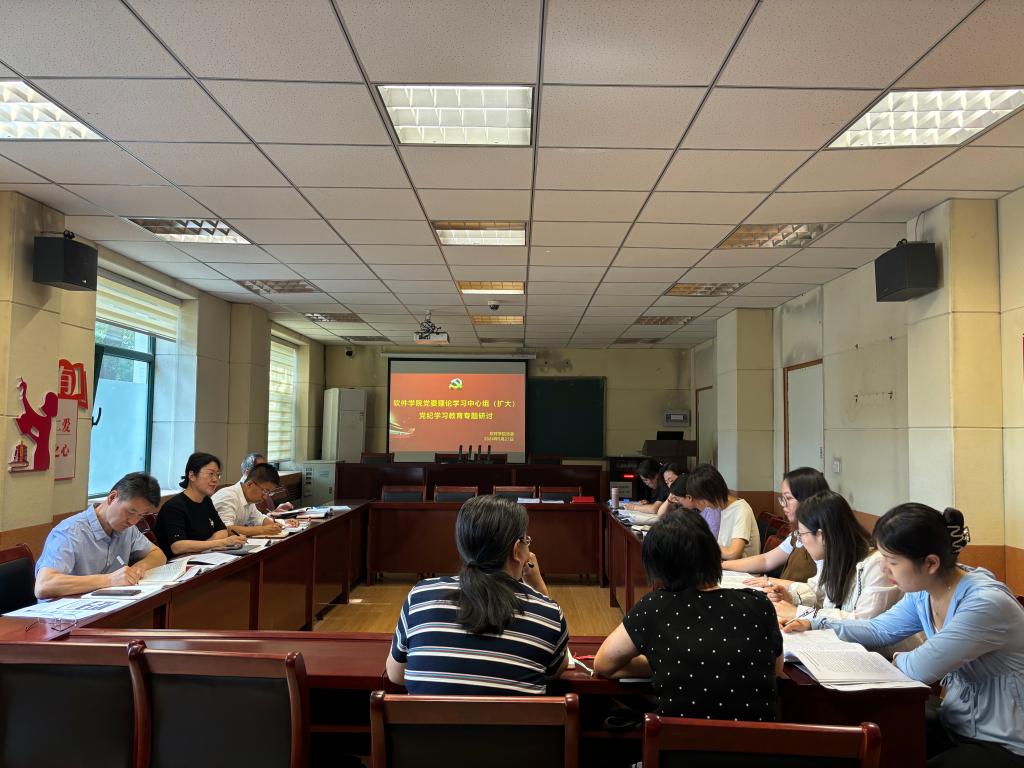 随后,理论学习中心组(扩大)成员开展了党纪学习教育第二次学习研讨,研讨由党委书记常旭青同志主持。学生第一党支部书记成方圆同志围绕“新形势下严肃组织纪律的重要性”展开研讨。她指出组织纪律是维护党的集中统一、保持党的战斗力的基本条件,新形势下我们更要以党纪学习教育为契机,不断严肃政治纪律、组织纪律,坚决清除基层党组织中出现的个别党员纪律意识淡薄的现象,确保党中央的决策部署在基层党组织坚决贯彻落实,增强党组织战斗力,锻造一支积极投身于中国式现代化建设的党员队伍。结合自身,作为一名高校教师、党支部书记,要不断强化组织意识,相信组织、依靠组织、服从组织,在守纪律、讲规矩上作表率。学生第二党支部书记李晓敏同志围绕“理解把握《条例》关于欺上瞒下,搞两面派,做两面人纪律处分相关规定”展开研讨。她指出绝对忠诚于党是共产党员必须具备的政治品格。党员、干部必须严格遵守党章、准则要求,对照《条例》规定,切实做到对党组织忠诚老实、襟怀坦白、言行一致,真正做到在任何情况下政治信仰不变、政治立场不移、政治方向不偏,永葆共产党人忠诚可靠的政治本色。我们要时刻绷紧旗帜鲜明讲政治这根弦,在大是大非面前、在政治原则问题上做到头脑特别清醒、立场特别坚定,决不当两面派、做两面人。