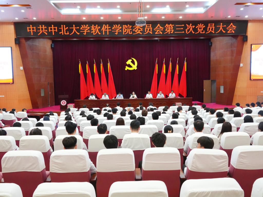 2024年6月1日下午,图书馆五层学术报告厅党旗飘扬,党徽闪耀,中共中北大学软件学院委员会第三次党员大会在这里隆重召开。大会应到正式党员158名,因病、因事请假5名,实到153名。院党委副书记高宏图同志主持会议。