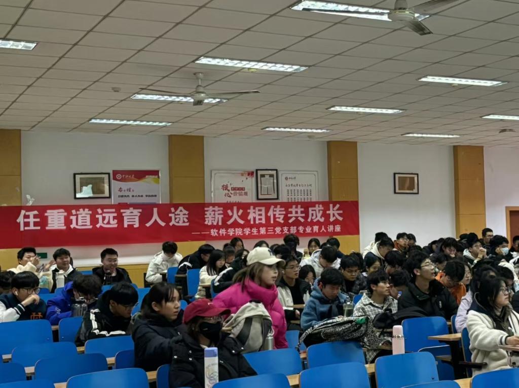 此次专业育人讲座的成功举办,为软件学院的同学们搭建了一个与优秀学长交流学习的平台,使他们对大学学习生活有了更清晰的认识,对推免之路有了更深入的了解。软件学院学生第三党支部也将继续秉承“任重道远育人途,薪火相传共成长” 的育人理念,积极组织更多有益的活动,助力学生成长成才,为软件学院高质量发展贡献自己的力量!