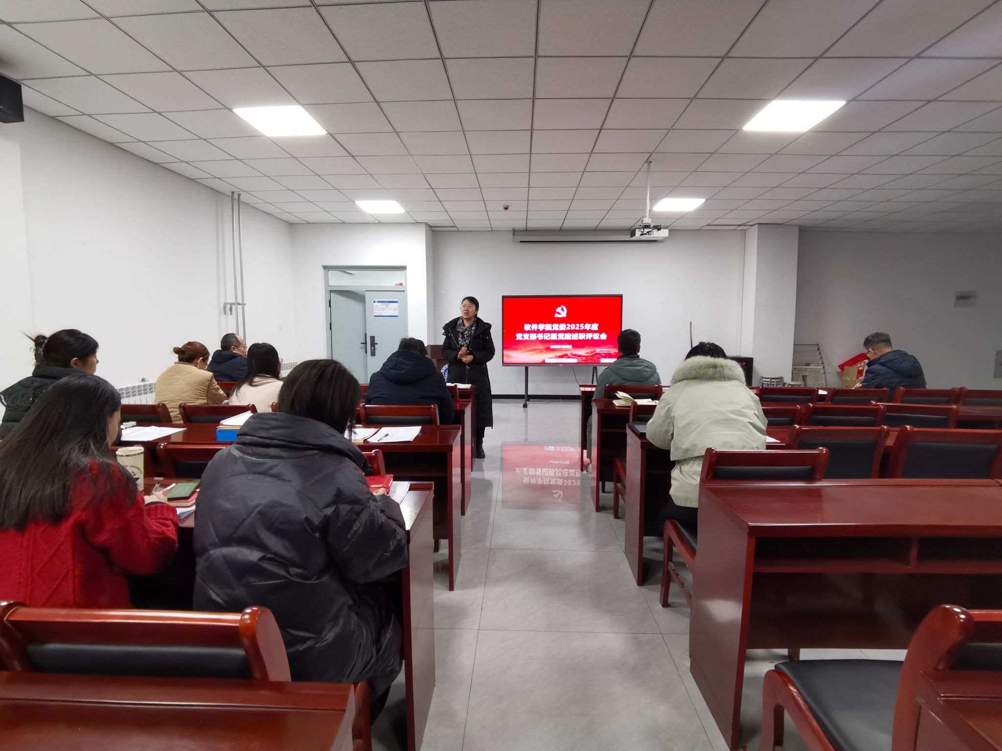 2026年1月19日,软件学院党委在软件实验大楼328会议室召开2025年度党支部书记抓党建工作述职评议会。学院党委委员、各党支部书记、党外人士代表及党员群众代表参加会议,会议由常旭青同志主持。