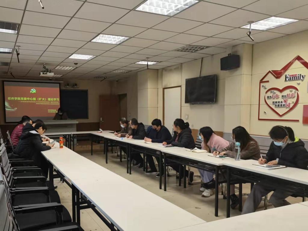 3月17日下午,软件学院党委在学院122会议室召开第二次理论学习中心组(扩大)会议,专题学习习近平总书记在2022年春季学期中央党校(国家行政学院)中青年干部培训班开班式上的重要讲话精神和十三届全国人大五次会议。院党委书记孙豫峰主持会议,中心组全体成员、各党支部书记、各科室科长参加会议,材料科学与工程学院党委书记薛亚奎列席旁听会议。