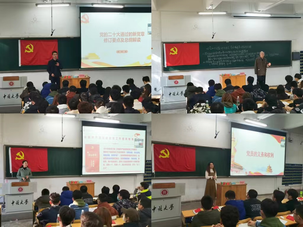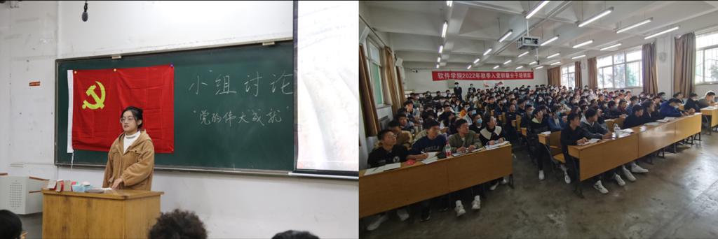 为期两天的培训班中,软件学院党委书记孙豫峰、计算机科学与技术学院党委副书记杨晓东、党委宣传部老师雷丽蓉、软件学院党委副书记高宏图、校关工委副主任徐继开、校党委组织部副部长常旭青等同志分别以《党的二十大报告全文解读》、《党的二十大通过的新党章修订要点及总纲解读》、《不忘初心、牢记使命——党的光辉历程》、《党的优良传统与作风》、《党的组织原则和纪律》、《党员的义务和权利》、《以党的二十大精神为指导、全面推进党的建设伟大进程》、《入党程序及应用文写作》为题进行了专题党课讲授。党课培训期间,所有学员还集中观看了《党课开讲啦》节目第3期:党的伟大成就,开展了以小组为单位进行的学习讨论。