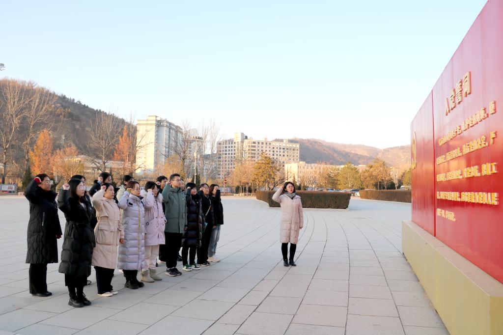 在张思德纪念广场,高达6米的张思德雕像静立于广场正中央,身姿英挺、目光炯炯。中轴线上镶嵌着的29颗五角星,象征着他短暂而光荣的一生。张思德在平凡工作岗位上默默奉献、以身殉职,用自己短暂的一生,生动诠释了全心全意为人民服务的宗旨。全体学员齐声诵读《为人民服务》,表达对这位人民英雄的无限哀思和崇高敬意。