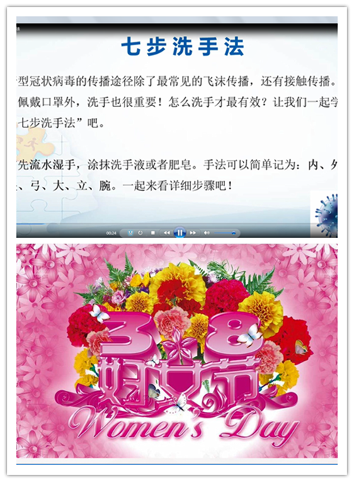 疫情暂时隔阻了美好春日里的徜徉踏青,但尊重女性、关爱女性绝不会因为疫情而阻隔。校工会为女教师们送上节日的问候,推荐了丰富的网络健康资源。软件学院工会邀请太原市妇幼保健院的妇科副主任鹿静为女教工带来了亲自制作的 “防疫科普小课堂:七步洗手法”、“如何预防宫颈癌”两个健康视频,为学院的女教工带来科学的保健知识,送来贴心的关怀和祝福。讲座将女性的保健常识与疫情特殊时期相结合,给了“停课不停学不停教”的女教师们更多的关爱。为女教工们准备的专业防护口罩也成为今年“三八妇女节”的特殊纪念。