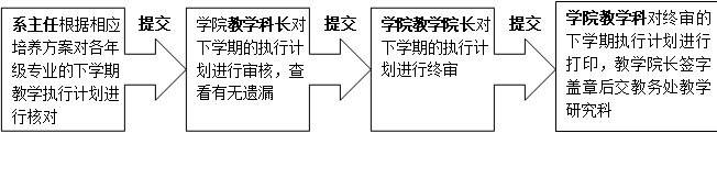 4.5月25日之前以学院为单位将核对无误装订好的教学计划(装订方法:左侧装订,需有封皮)打印一式2份,经教学副院长和系主任签字、学院盖章后1份报教务处教学研究科,1份留学院。