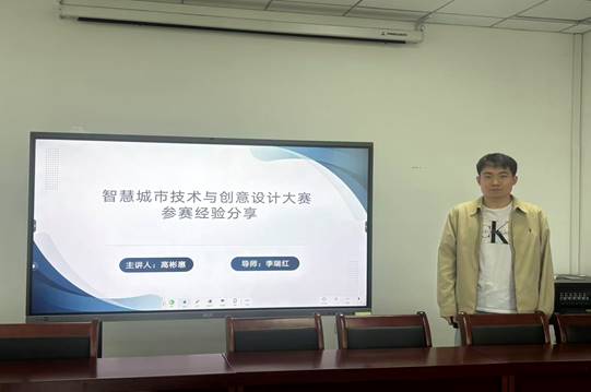 高彬惠同学结合自身参与第十、十一届中国研究生智慧城市技术与创意设计大赛并获得全国二等奖的经历,以“智慧城市技术与创意设计大赛参赛经验分享”为主题展开分享。他从竞赛选题思路与创新点挖掘、项目技术路线设计与实现、答辩技巧及评委关注重点等多个方面,为同学们梳理了赛事参与的关键环节,提供了实用的参赛参考。