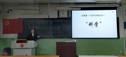 张梦溪同学主要从“中国共产党何以赢得中国的江山”和“为什么中国共产党能够引领中国百年的变革与发展”两个方面进行了系统阐述,并带领大家学习了四个历史阶段、民族复兴以及两个百年目标的相关知识,使同学们深刻铭记住了我党的建党精神。