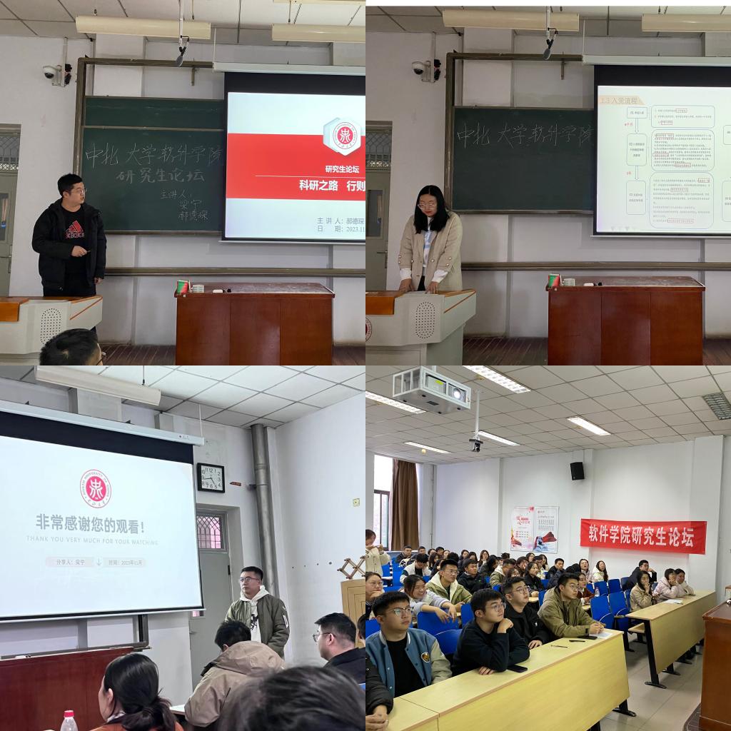11月22日,软件学院在11311H为研究生们组织了2023年第二场研究生论坛,活动邀请到国家奖学金获得者梁宁和郝德琛两位同学,他们从不同方面为大家介绍了自己研究生三年的整体规划及获评国奖经验。
