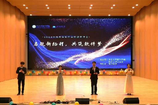晚会在绚丽多彩的灯光秀中拉开帷幕,瞬间点燃了全场的热情。首先,软件学院党委副书记高宏图发表了热情洋溢的迎新致辞,对新同学的到来表示热烈欢迎,鼓励各位新同学在未来学习、生活中能够秉持“明德善思,笃行于新”院训的内涵精神,追求卓越实现自我价值,并希望新同学们能够在软件学院展现自己的才华、实现自己的梦想。