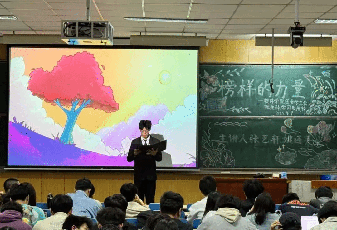 为深化薪火相传育人计划,发挥优秀学子示范引领作用,助力在校生明晰考研就业方向、破解成长困惑,2025年4月9日晚,软件学院学习部与就业部在11309H教室,联合举办第十三届“榜样的力量”主题分享活动。本次活动特邀两位优秀学长学姐做客分享,干货满满的经验讲解,为在场学子指明前行方向、注入奋进动力。