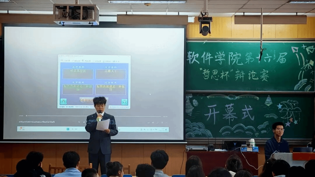 为丰富校园文化生活,提升学生思辨素养与逻辑表达能力,展现当代青年锐意进取、昂扬向上的精神风貌,由软件学院团委学生会学习发展部承办的第十六届“哲思杯”辩论赛,于2025年11月2日在11409H教室正式启动。本次开幕式集思辨交锋与文艺展示于一体,为整场赛事拉开了精彩序章。