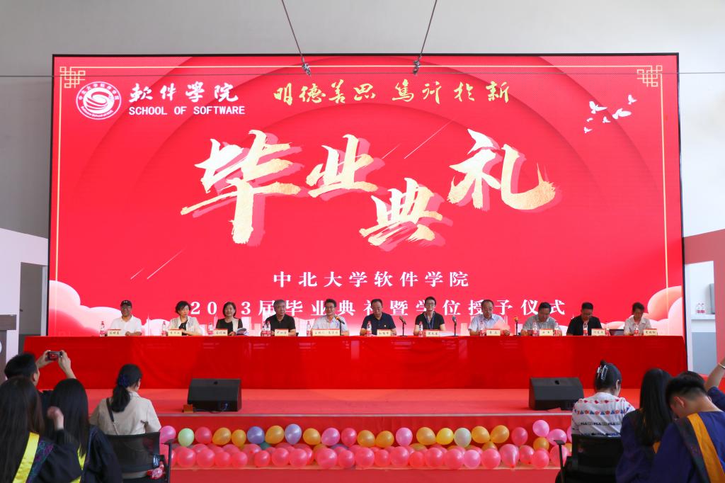 软件学院党委书记孙豫峰、院长宋文爱、副院长李众、软件工程专业实验与实训中心主任尹四清、软件开发与测试系主任洪军、副主任陈够喜、物联网与智慧城市建设系主任付东来、副主任李瑞红、大数据与人工智能系主任李华玲、副主任马巧梅出席。学院辅导员、毕业班级班主任、部分毕业生家长及2023届全体毕业生参加了典礼与仪式。