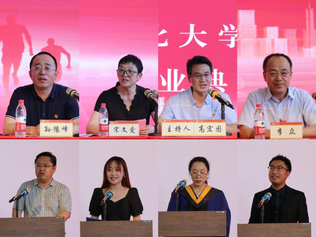 研究生毕业代表王伟艳、本科生毕业代表赵怡君、在校生代表张泽凯分别发言,回顾了在校学习生活的美好时光,代表全体毕业生向母校和恩师表达了由衷感谢和诚挚祝福,表示将牢记“明德善思、笃行于新”的院训,到新时代、新天地中去施展抱负、建功立业。在激动澎湃的氛围里,洪军老师致毕业寄语,希望毕业生们学会感恩,行稳致远;学会坚强,发现自我;调整自我,适应社会;积极进取,终生学习。