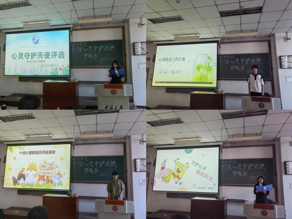 答辩期间,参选的心理联络员充分展示了其工作期间积极参加培训、举办心理健康主题班会、辅助学院心理测评、组织团体辅导、开展读书观影活动、完善朋辈辅导、协助开展危机排查、利用网络媒体宣传心理健康知识等多方面的优秀工作实效,使同学们对心理联络员这个普通的班委身份有了更全面更深层次的认识。经过激烈角逐,来自22130402班的韩思琪等十名同学荣获软件学院2024年“十佳心灵守护天使”称号,心理站22130427班邵晨星等四名同学获得优秀工作者称号。