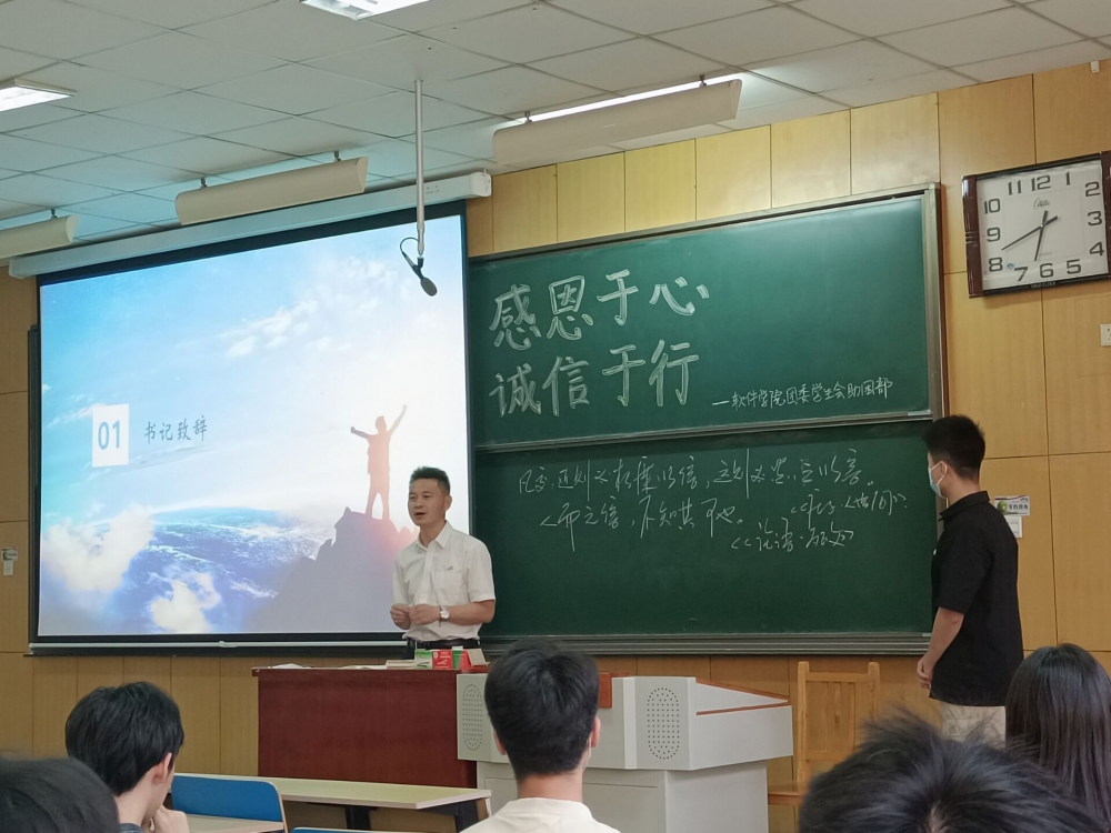 2022年5月31日下午六点半,学院于11309H教室组织开展“感恩于心,诚信于行”资助主题教育活动,2019、2020、2021级各班困难生负责人和班级代表参加会议。在同学们庄严而肃穆的校歌声中,大会拉开序幕。会上软件学院党委副书记高宏图以《诚信是学生的立学之本,立身之基》为主题,结合庄子、论语中的典故以及现实生活中的典型案例,从考试、竞赛、学业深造方面阐述了诚信是学生的立学之本,从社交、待人处事、日常事务方面强调诚信是人生成长路上的立身之基,教育引导广大同学们积极践行社会主义核心价值观。辅导员盖海霞以《资助政策宣讲》为主题,针对在校生续贷等工作的要点进行了宣传讲解,其次,大会利用生源地助学贷款续贷和毕业确认的契机,通过二维码答题竞赛方式、邀请家庭经济困难的优秀毕业生王瑞鹏、赵琳杰作为感恩励志代表,通过分享高薪就业和研究生推免的经验的方式,引导学生感恩国家资助政策,感恩母校。