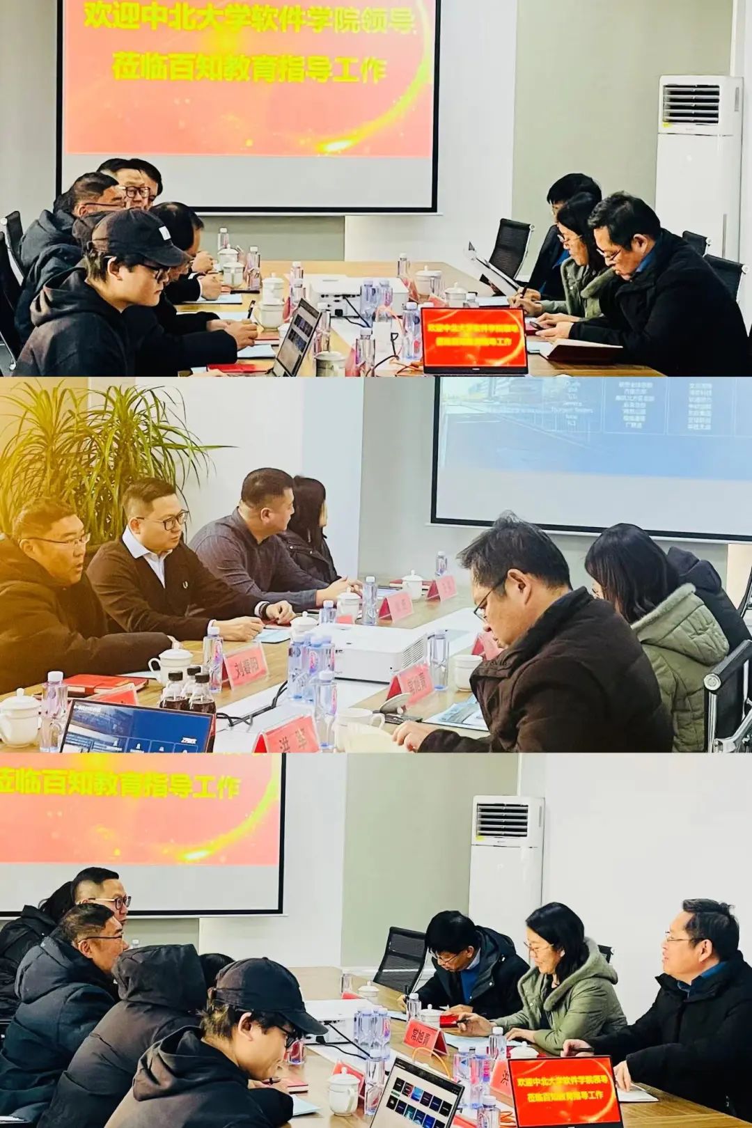 调研过程中校企双方进行了细致的沟通与交流,学院领导老师们听取了公司发展近况及相关方面介绍。在得到院领导老师对教学管理保障工作的肯定后,校企双方就百知教育实训基地“3+1”培养模式下重点关心和关注的实训基地学生管理、日常保障工作进行了进一步的深入交流。双方表示,将在今后的工作中继续加强交流合作,共同推动实训基地建设,为学生提供更加优质的教育资源和实训环境,有效提高学生的实践能力和就业竞争力。
