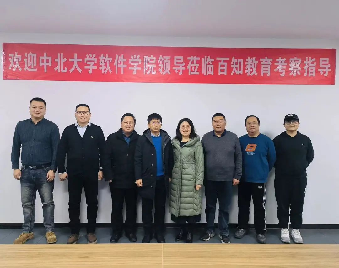 2023年北京百知教育科技有限公司和中北大学软件学院的校企合作、协同育人步入新的阶段。为了进一步加强校企合作,提升实训质量,共同探讨高校“3+1”培养模式,为学生提供更好的校外实践教学环境。12月22日,中北大学软件学院党委书记常旭青、院长强彦、软件开发与测试系系主任洪军一行领导老师莅临百知教育天津实训基地对基地的整体教学及学生管理相关方面开展考察调研。