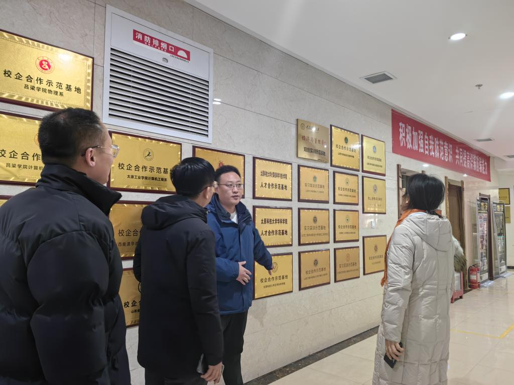 为深入推进落实产教融合、校企合作,充分发挥实训优势,提升学员参与实训的现实意义,推动院校学生更快、更好、更稳的就业,2024年1月3日,中北大学软件学院党委书记常旭青、院长强彦、系主任洪军及辅导员成方圆,就校企合作和大学生职业能力建设赴山西信思智学教育科技有限公司进行深入考察交流。考察团领导首先参观了信思智学园区,了解园区环境、各项设施。